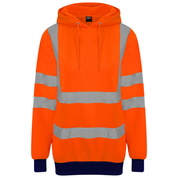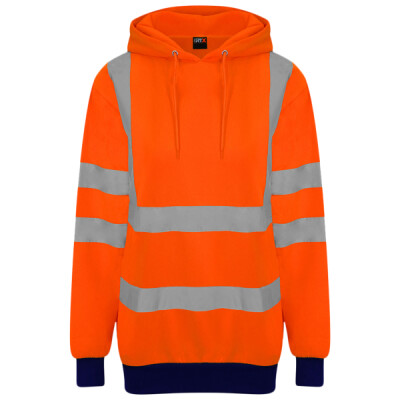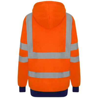 Certified EN ISO 20471:2013+A1:2016. RIS-3279-TOM ISSUE 1:2016 (Orange only). HV Orange/Navy & HV Yellow/Navy - Class 3. Double fabric hood with adjustable drawcords. Ribbed contrast colour cuff and hem. Inner fabric brushed fleece. Over shoulder, around arm and body reflective tape.