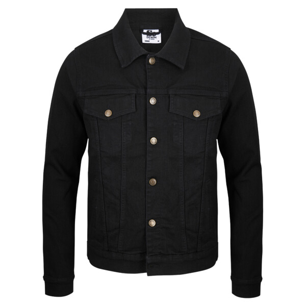 99% cotton/1% elastane. Stretch denim. Fashion fit. Classic denim jacket panelling. Hanging loop. Shank button closure. Two chest pockets with flap closure. Two front pockets. Single button cuffs. Contrast twin needle stitching.