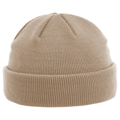 Contains 100% certified recycled polyester. Double-layer knit. Double turn-up cuff design for optimal decoration. Shallow crown. TearAway label for ease of rebranding.
