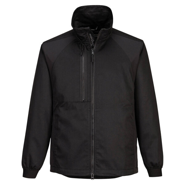 Polyester/cotton jacket with four-way stretch panels and chest zip pocket. Recycled polyester fabrics. Easy to embroider. 40+ UPF-rated fabric.