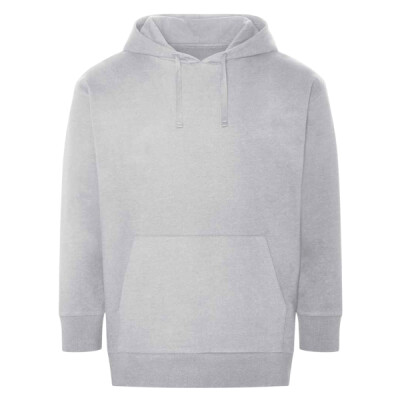 70% recycled cotton/30% recycled polyester. Soft peached fabric with brushed inner. Relaxed fit. Drop shoulder style. Hood with drawcord. Front pouch pocket. 2x1 ribbed cuffs and hem. Unbranded size label. Recycled cotton is made from 100% pre-consumer waste.