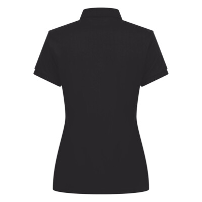 Polo shirt made from recycled polyester yarn with wicking properties. Regular fit with three-button placket. Henbury stand-up collar. 1x1 ribbed collar and cuffs. Dyed-to-match buttons. Female fit with shaped side seams. Henbury cut-out label for easy rebranding.