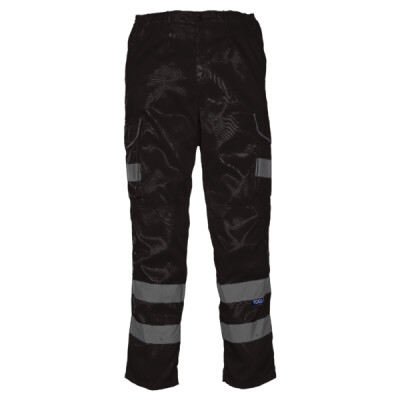 80% polyester/20% cotton. Yellow and orange conform to EN ISO 20471: 2013 + A1: 2016 class 1. RIS-3279-TOM (orange only). Black and navy provide enhanced visibility. Water repellent finish. Part elasticated waistband with belt loops. Self colour zip fly with button over. Two side pockets. Two cargo pockets with reflective tape and border trim. Rear pocket with button closure. Knee pad pockets. Two reflective bands around each lower leg. Branded woven tab on lower left leg. Knee pads available YK304.