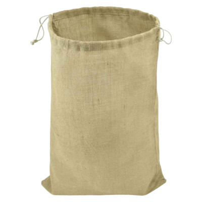 Natural jute. Cotton drawcord closure. Tear out label. Capacity 40 litres.