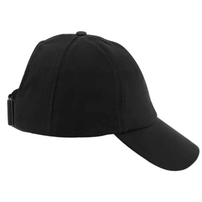 100% recycled polyester. Coolmax® fabric sweatband. Lightweight and breathable fabric. Pre-curved peak. Ponytail opening. Elasticated strap with size adjuster. Tear out label.
